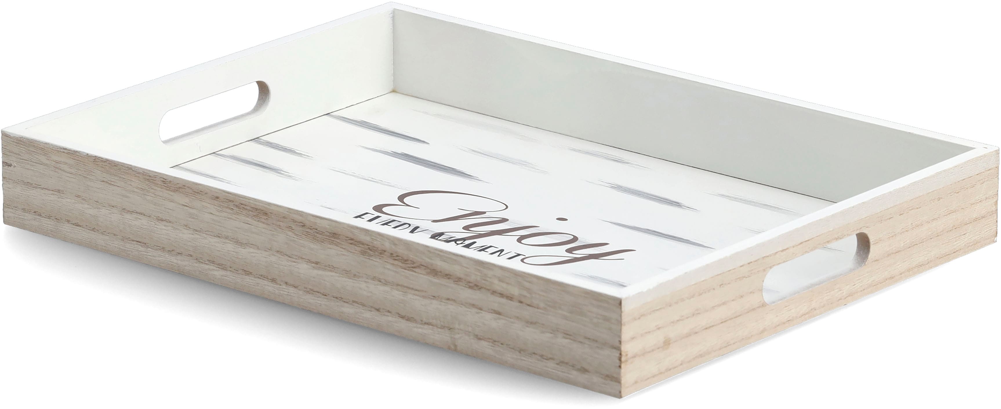 Tablett ZELLER PRESENT "Enjoy", weiß, B:30cm H:5,5cm L:40cm, Holzwerkstoff, Tabletts, Hochwertiges Poloniaholz